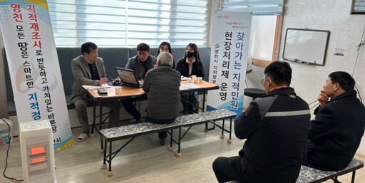 영천시 지적정보과는 지난 20일 청통면 대평리 마을회관을 시작으로 2026년 새해 첫 지적민원 현장처리제 운영에 들어갔다고 밝혔다. 영천시는 연말까지 교통이 불편하거나 거동이 어려워 행정기관 방문이 쉽지 않은 주민들을 직접 찾아가 민원 불편을 해소할 계획이다.