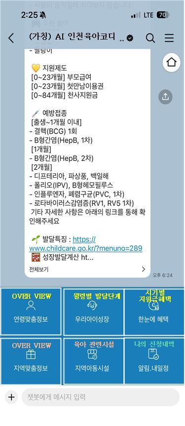 이에 시는 카카오톡 챗봇을 활용해 행정 절차와 예산 부담을 줄이면서 연령과 거주 지역에 맞는 맞춤형 육아 정보를 제공할 계획이다. 'AI 인천육아코디'는 단계적으로 인공지능과 자동화 기능을 연동해 개인화된 정보 안내와 일정 알림 서비스 등으로 기능을 확대할 예정이다.