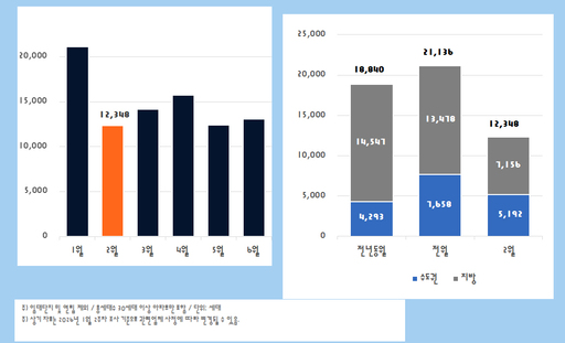 26일 부동산 플랫폼 직방에 따르면 2월 입주물량은 1만2348세대로 집계됐다. 전월(2만1136세대)보다 9000세대 안팎으로 줄었고, 전년 동월과 비교해도 6000세대 이상 감소했다. 월별 기준으로 올해 상반기 중 가장 낮은 수준이다.