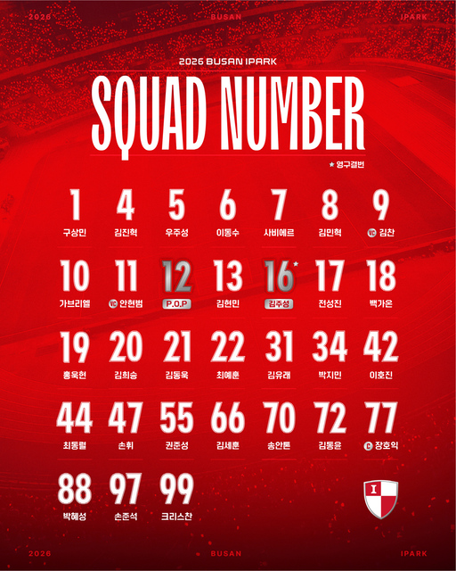 구단은 "선수 개개인의 역할과 책임, 그리고 팀이 나아갈 방향을 종합적으로 고려해 등번호를 확정했다"며 "2026시즌, 부산아이파크는 승격이라는 목표를 향해 한 치의 흔들림 없이 나아갈 것"이라고 밝혔다.