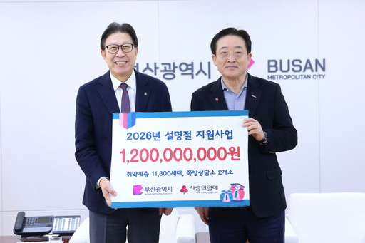 부산사랑의열매는 지난 6일 부산시청에서 박형준 시장과 이수태 회장이 참석한 가운데 2026년 설 명절 위문금 전달식을 열었다.