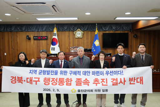 울진군의회(의장 김정희)가 경북·대구 행정통합 논의를 '졸속 추진'이라 규정하며 강한 반대 입장을 밝혔다. 충분한 숙의 없이 특별법 발의를 추진한 정부와 경상북도를 동시에 비판했다.