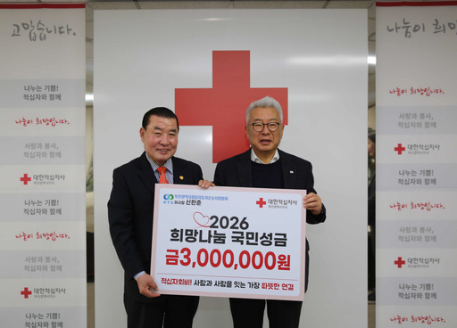 대한적십자사 부산지사는 지난달 26일 부산시화물자동차운송사업협회에서 2026 희망나눔 국민성금을 전달받았다고 밝혔다.