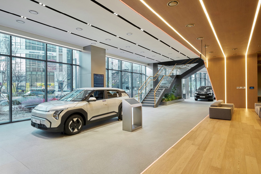 시흥 플래그십 스토어는 고객 체험 중심 공간으로 구성됐다. 대형 미디어월 기반 '3D 컨피규레이터'를 통해 차량 내·외장 구성과 도어·트렁크 개폐, 방향지시등 작동 등을 가상으로 확인할 수 있다. 차량 인근에는 '멀티 콘텐츠 보드'를 배치해 차량 제원 정보와 컨피규레이터, 뉴테크 시뮬레이터, 기아 유튜브 콘텐츠 등을 한 번에 탐색할 수 있도록 했다.