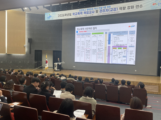 경남교육청은 이달 23일부터 26일까지 4일간 의령 미래교육원에서 초·중·고등학교 학교 폭력 책임 교사와 교감 등 관리자를 대상으로 '2026년 학교 폭력 책임 교사 및 관리자 권역별 역량 강화 연수'를 진행한다고 밝혔다.