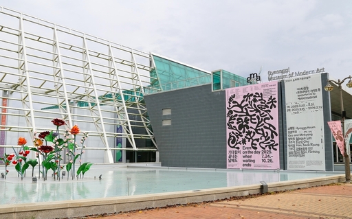 경기도미술관은 안산 시민의 정원이라 불리는 화랑유원지 한가운데 자리하고 있다. 제2주차장에서 미술관을 바라보면 거대한 반투명 유리벽과 경사진 지붕을 떠받치는 파이프 구조가 마치 배의 돛대처럼 보인다. 화랑호수에 닻을 내린 듯한 이 건축물은 어느덧 개관 20주년을 맞았다.