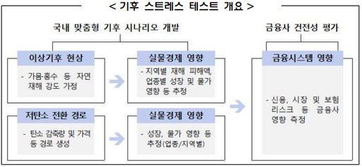 금융감독원과 한국은행이 기상청과 협력해 국내 금융권의 기후변화 리스크를 점검하기 위한 '기후 스트레스 테스트'를 공동으로 실시한다. 이상기후와 탄소 감축 정책 강화가 금융회사 건전성에 미치는 영향을 분석해 금융 시스템 차원의 대응 체계를 강화하기 위한 조치다.