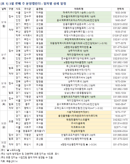 15일 부동산R114에 따르면 3월 셋째주에는 전국 10개 단지, 총 5645가구가 분양을 시작한다. 이 가운데 일반분양 물량은 2837가구다.