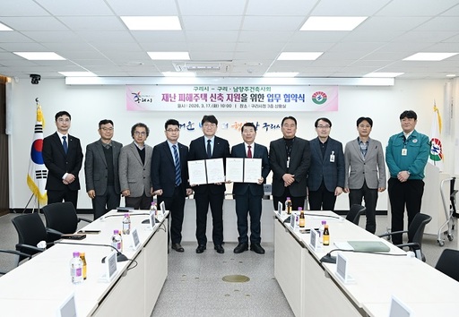 구리시(시장 백경현)는 지난 17일 구리·남양주건축사회(회장 박용남)와 재난 피해 주민의 신속한 주거 안정을 지원하기 위한 「재난 피해 주택 신축지원 업무협약」을 체결했다.