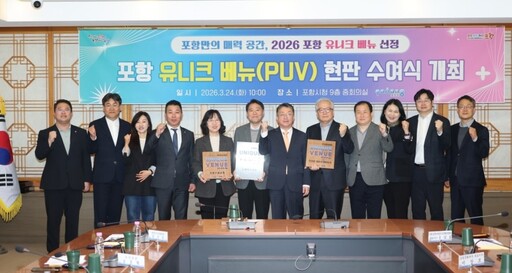 포항시는 24일 시청 중회의실에서 '포항형 유니크 베뉴 현판 수여식'을 열고 유니크 베뉴를 공식 지정하며 MICE 산업 경쟁력 강화에 나섰다.