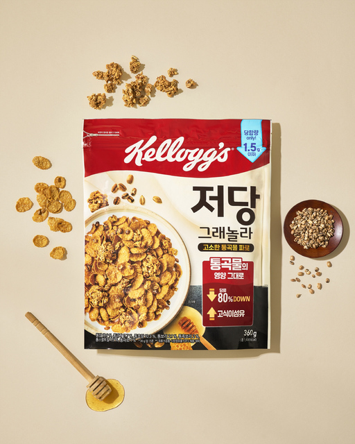 대표적으로 켈로그는 저당 그래놀라 제품에 통곡물과 식이섬유를 전면에 배치했다. 당류를 대폭 낮추는 대신 올리고당, 꿀, 스테비아 등을 활용해 단맛의 이질감을 줄이고, 고대곡물 '파로'를 포함한 통곡물 7종과 식이섬유를 더해 포만감과 식감을 보완하는 방식이다. 당을 줄인 뒤 생길 수 있는 허전함을 원료 구성으로 상쇄한 사례로, '저당=가벼움'이라는 인식을 '저당=균형 잡힌 한 끼'로 확장하려는 시도로 읽힌다.