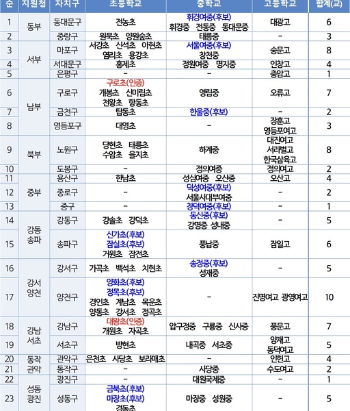 구로초·대왕초 인증, 중학교 후보학교도 확대