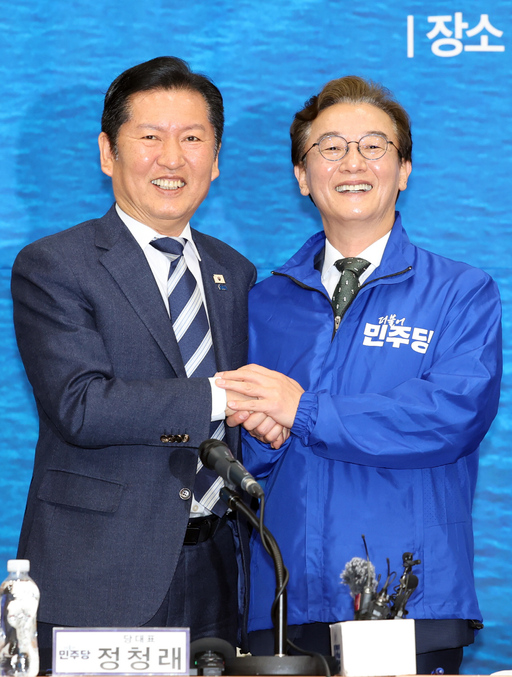 정청래 대표는 이날 부산항 국제전시컨벤션센터에서 열린 현장 최고위에 참석해 "강원도에는 우리가 알고 있는 높새바람 이외에 파란 바람이 불고 있는데 이곳 부산에도 파란 바람이 불고 있다"며 "파란을 일으킬 해양 수도 부산이 이번 지방선거 승리 진원지가 될 것"이라고 말했다.