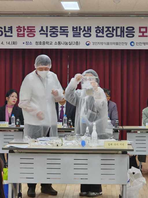 서구는 지난 14일 관내 청호중학교에서 서구청과 보건소, 식품의약품안전청, 인천시 등 유관기관이 참여한 가운데 식중독 대응 모의훈련을 진행했다고 밝혔다.