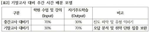 기말고사는 중간고사보다 학습량이 1.5배 이상 많기 때문에 스스로 문제를 풀어내고 개념을 정리하는 아웃풋 학습의 비중을 높여야 한다. 학원 수업 전후 1시간을 복습 골든타임으로 정해 배운 내용을 즉시 내 것으로 만드는 과정이 필수적이다.