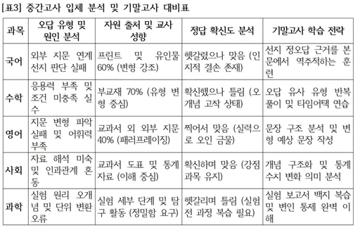 기말고사의 성패는 중간고사에서 드러난 자신의 취약점을 얼마나 정교하게 복기하느냐에 달려 있다. 다음은 주요 과목별로 오답 유형과 교사 성향 그리고 학습 방법론을 결합한 통합 분석 가이드이다.