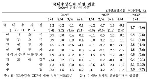 올해 1분기 한국 경제가 전 분기 역성장에서 벗어나 1.7% 성장했다. 반도체를 중심으로 한 수출 회복과 설비·건설투자 반등이 동시에 나타나면서 분기 성장률은 2020년 3분기 이후 가장 높은 수준을 기록했다.