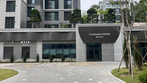 커뮤니티 시설에도 전통의 미학을 녹여냈다. 실내 골프연습장과 피트니스 센터 등 편의시설이 마련된 '클래시안 센터' 입구 상부에는 잔잔하게 번지는 물결무늬가 반복된다. 구름이 흘러가는 듯한 곡선 패턴으로, 병풍이나 단청에서 보이던 문양을 닮았다. 눈에 띄는 장식은 최소화했지만 가까이에서 보면 전통 문양을 변주한 디테일이 읽힌다. 높이보다 깊이, 장식보다 조화를 택한 설계가 단지 전반에 부드러운 인상을 더한다.