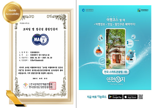 인천광역시는 스마트관광 플랫폼 '인천e지'가 3년 연속 '모바일 앱 접근성 품질인증'을 획득했다. 이번 인증은 한국 웹 접근성 인증평가원이 장애인과 고령자 등 정보 약자의 이용 편의성을 엄격히 심사해 부여하는 제도이다.