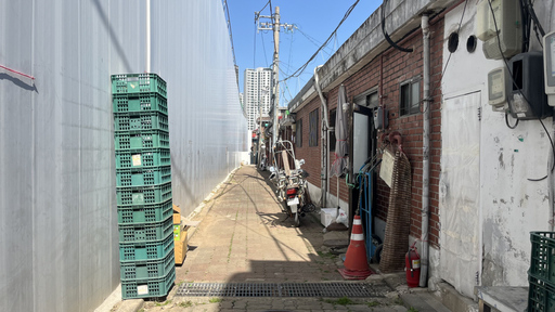 장위뉴타운 10구역 공사장과 맞닿아 있는 장위전통시장 골목 주택가./성채리 인턴기자