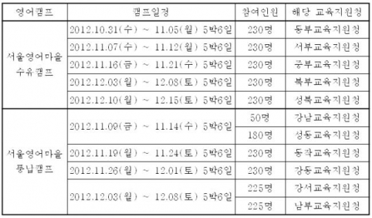 신청대상은 국민기초생활수급자, 저소득 한부모가족, 북한이탈 주민 또는 그 자녀, 차상위계층 등 생활이 곤란하고 과거 서울영어마을수유 및 풍납캠프 프로그램에 참여한 경험이 없는 학생이며 학교장(교육감) 추천을 받아 교육청에 신청하면 된다.