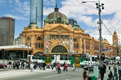멜버른 도심 한가운데 있는 랜드마크 플린더스역.