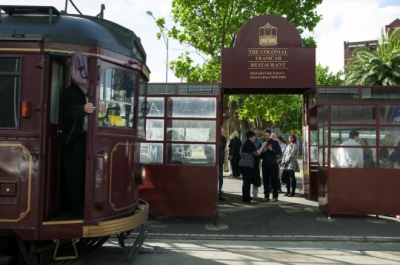 멜버니언들에겐 낭만의 상징으로 통하는 '클로니얼 트램카 레스토랑'(왼쪽)의 출발을 기다리는 승객들.