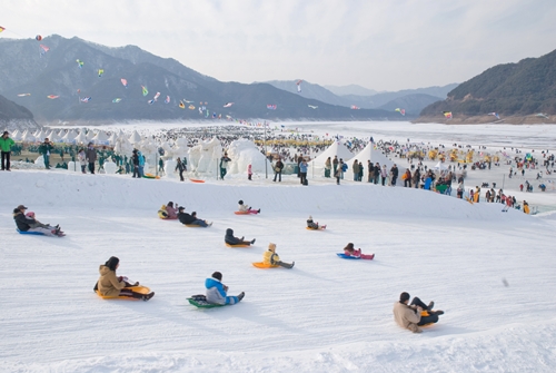 인제군은 빙어축제가 열리는 소양강 상류의 광활한 얼음판 위에 얼음축구장, 얼음썰매장, 스케이트장 등 축제장 조성에 본격 나섰다.