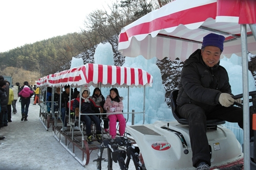 또 소가 끄는 썰매, 비료포대썰매, 얼음썰매, 튜브 눈썰매, 얼음봅슬레이, 빙어낚시, 이양기썰매, 맨손 빙어잡기 등 다양한 체험 프로그램이 준비돼 있다.