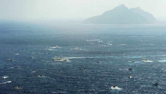 대만 해양경찰의 경비선 8척과 어선 수십 척이 25일 센카쿠(중국명 댜오위다오) 해역에 진입해 일본 순시선과 물대포를 쏘며 충돌하고 있다.