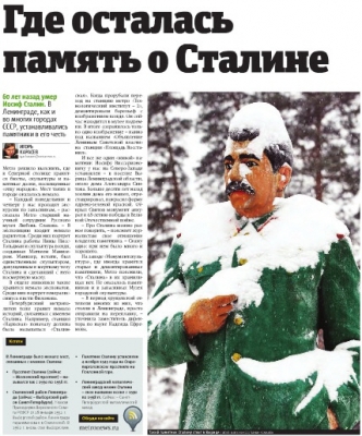 지난 5일은 이오시프 스탈린이 사망한지 60년 되는 날이었다. 오랜 세월이 흘렀지만 페테르부르크시 곳곳에는 '인민의 아버지' 스탈린을 기념하는 추모비(흉상, 조각상, 기념물)가 상당수 남아있다.