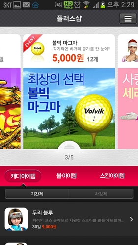 이에 따라 골프존 시스템 내에서 사용 가능한 캐디·볼, 스킨 등의 상품을 구매할 수 있는 '골프존 플러스' 서비스를 골프존닷컴(www.golfzon.com) 홈페이지 뿐만 아니라 스마트폰 골프존앱을 통해 바로 이용할 수 있게 됐다.