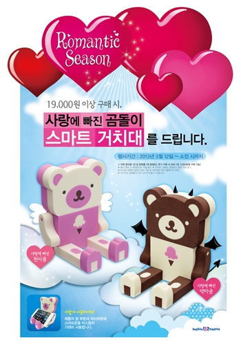 배스킨라빈스는 화이트데이를 기념해 1만9000원 이상 구매 고객을 대상으로 '사랑에 빠진 곰돌이' 스마트 거치대를 증정하는 이벤트를 진행한다.