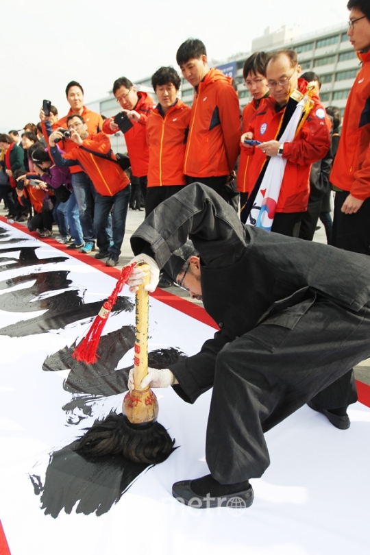 [포토] 경북 실크로드 탐험대 '힘찬 글씨의 힘을 받으시오!'