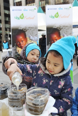 21일 하이트진로음료가 '세계 물의 날'(22일)을 맞아 서울 청계광장에서 아프리카 어린이들에게 식수를 지원하기 위한 '나눔水 Festival'을 열었다. 초록우산 어린이재단과 함께 한 이날 행사에선 아프리카 아이들에게 보내는 희망 메시지를 전달하고 기금 모금행사를 진행했다.