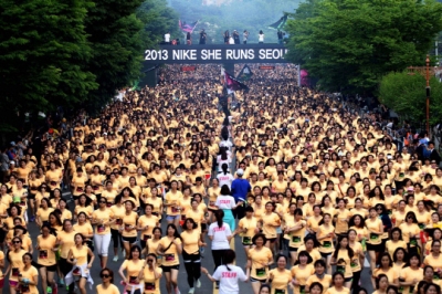 나이키가 서울시와 공동으로 주최한 '나이키 쉬런 서울 7K'가 지난 25일 서울 상암 월드컵공원 평화광장에서 여성 러너 1만 여명이 참석한 가운데 성황리에 개최됐다.