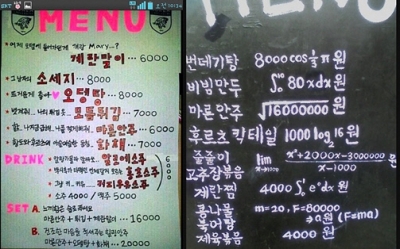 ▲ 대학가 주점 메뉴판