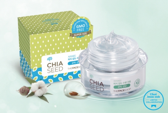 더페이스샵은 '치아씨드 피지잡는 수분크림' 50만 개 판매 돌파를 기념해 최범석 디자이너와 콜라보레이션 한정판을 내놨다. 최범석은 더페이스샵의 '착한 씨앗 지킴이' 캠페인에서 모티브를 얻어 생동감 넘치는 디자인을 제품에 입혔다. /박지원기자