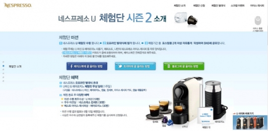 U체험단 이벤트 페이지(nespresso-campaign.co.kr)에 응모하면 총 400명을 선정해 U 체험킷을 무료로 대여한다. U 체험킷은 네스프레소 U 머신, 에어로치노, 캡슐, 컵세트, 아이스 레시피 카드 및 캡슐 재활용백으로 구성됐다. 네스프레소 'U'는 소비자가 선호하는 커피의 양을 기억해 커피를 추출해주는 젊은 층들을 위한 맞춤형 머신이다.