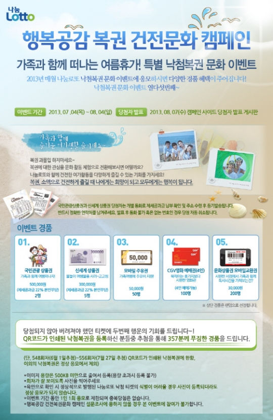 떨어진 복권으로 여름 휴가를! 나눔로또 낙첨복권 이벤트