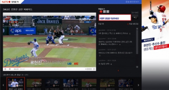 네이트 "28일 류현진-추신수 생중계 보며 이벤트 참여하세요"