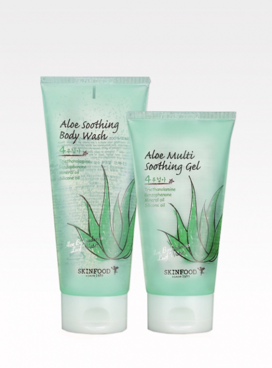 스킨푸드의 '알로에 멀티 수딩젤'은 진정 작용이 탁월한 알로에베라잎수를 함유했다. 특히 냉장고에 시원하게 보관한 뒤 사용하면 쿨링효과까지 볼 수 있다.