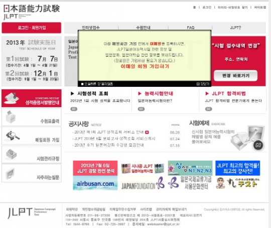 ▲ 일본어능력시험 홈페이지