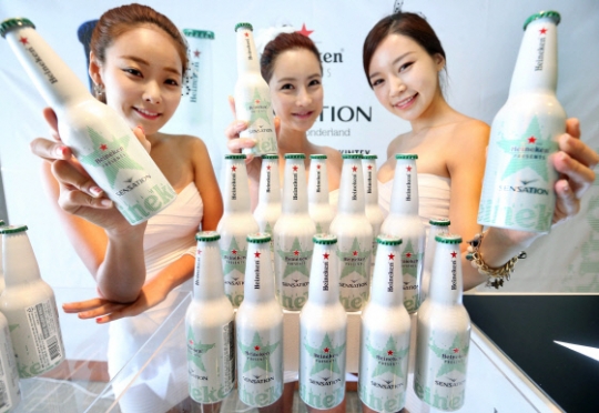 맥주 브랜드 하이네켄이 28일 서울 명동 이비스호텔에서 세계적인 댄스 이벤트 '2013 하이네켄 프레젠트 센세이션'을 기념해 '센세이션 리미티드 에디션'을 선보이고 있다. 이 제품은 병 표면에 UV잉크가 특수처리 돼 있어 UV조명에서 숨겨진 디자인이 나타나는 것이 특징이다. 한편 11월 30일에 열리는 2013 하이네켄 프레젠트 센세이션의 티켓 정식 예매는 다음달 2일 오후 12시부터 인터파크(www.interpark.co.kr)에서 시작된다.