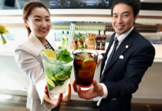 럼(RUM) 브랜드 수입사 바카디 코리아가 5일 서울 강남구 청담동 믹솔로지바에서 '바카디 클래식 칵테일 모히토'와 '바카디 블랙' 출시를 기념해 다양한 칵테일을 시연하고 있다. 바카디 클래식 칵테일 모히토는 라임과 민트의 산뜻함이 어우러져 최고의 모히토 칵테일 맛을 자랑한다. 바카디 블랙은 참나무통에서 4년 이상 숙성시켜 깊고 부드러운 맛이 특징이다. /연합뉴스