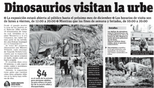 에콰도르, 티라노사우루스 복원? 실물크기 공룡 전시회