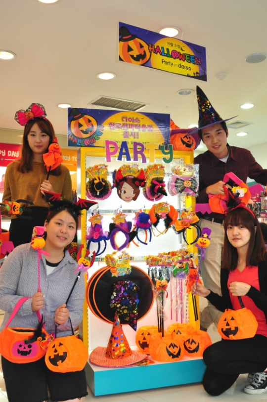 다이소는 핼러윈 파티용품을 선보였다. 마녀 모자와 망토 등 분장용품과 사탕·과자를 담을 수 있는 호박 가방 등 파티용품 28종이다. 각 용품은 2000원 균일가에 판매한다. /박지원기자