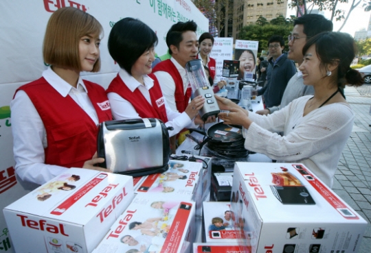 이날 바자회에서는 프라이팬·블렌더·무선주전자·커피메이커·토스터·다리미 등 테팔의 주요 제품을 할인된 가격에 판매했다. 모금된 수익금은 초록우산 어린이재단을 통해 결식아동들에게 전달될 예정이다./박지원기자