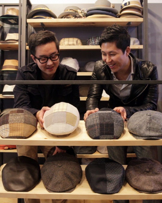 '남자의 계절' 가을을 맞아 24일 '롯데피트인 동대문점'을 찾은 남성 고객들이 다양한 소재와 디자인의 헌팅캡을 살펴보고 있다./롯데자산개발 제공
