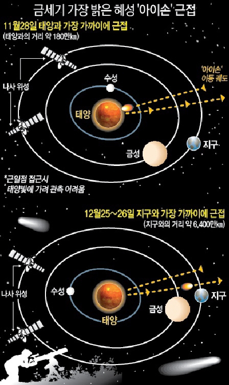 ▲ 금세기 가장 밝은 혜성 '아이손'. /미 항공우주국(NASA)